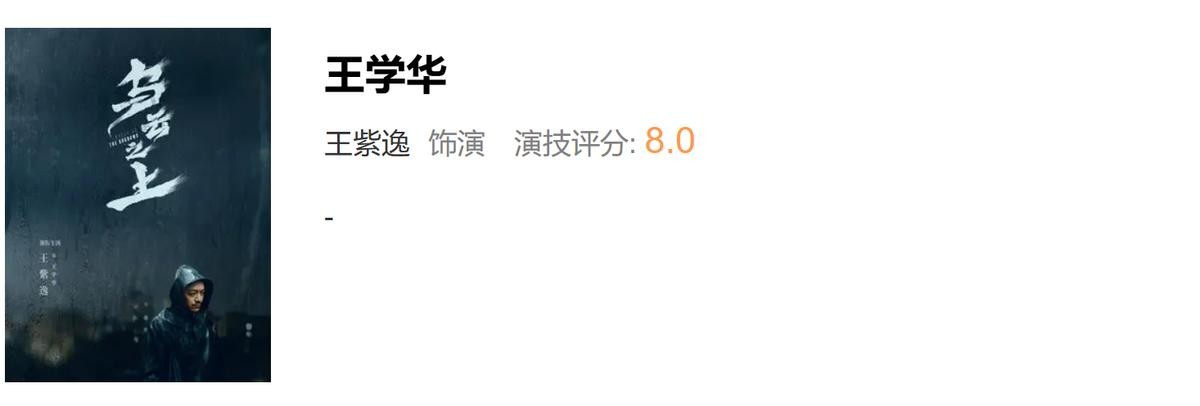 说实话,王学华这个角色虽然大奸大恶,但却也有着强烈的悲情色彩,这个角色被王紫逸演活了,而他的演技评分仅有8分,我认为低了。