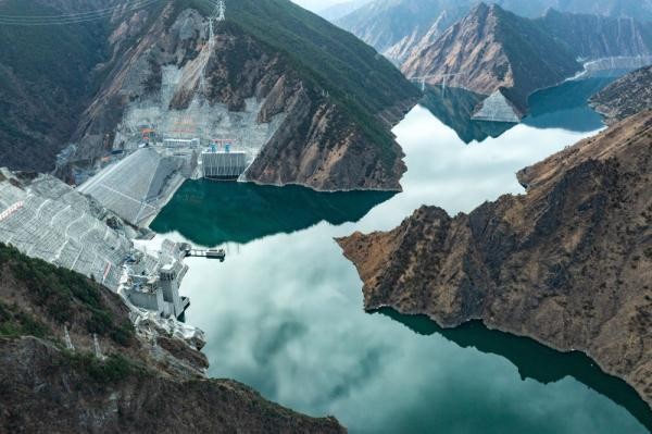 这是无人机航拍的雅砻江两河口水电站及库区(2022年3月17日摄)。新华社记者 沈伯韩 摄
