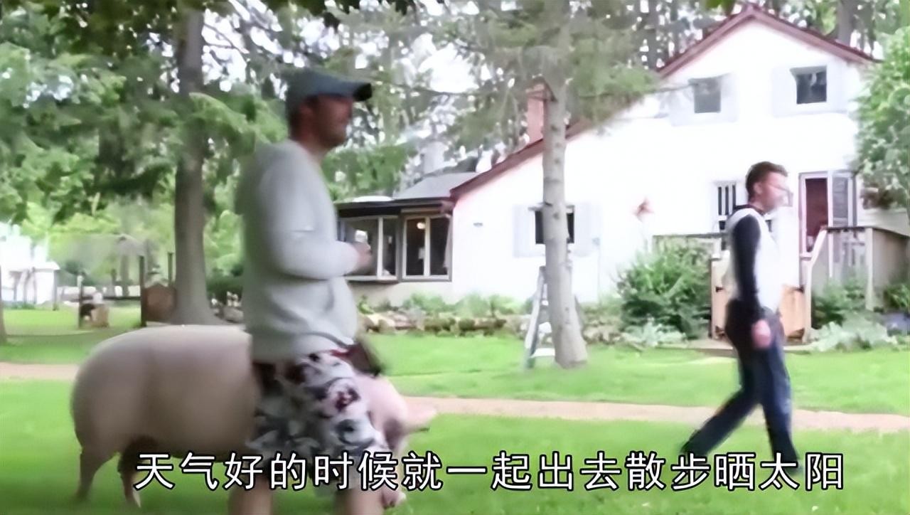 平时,戴维还会带着小母猪一起出去散步,丝毫不顾周围人异样的眼光。