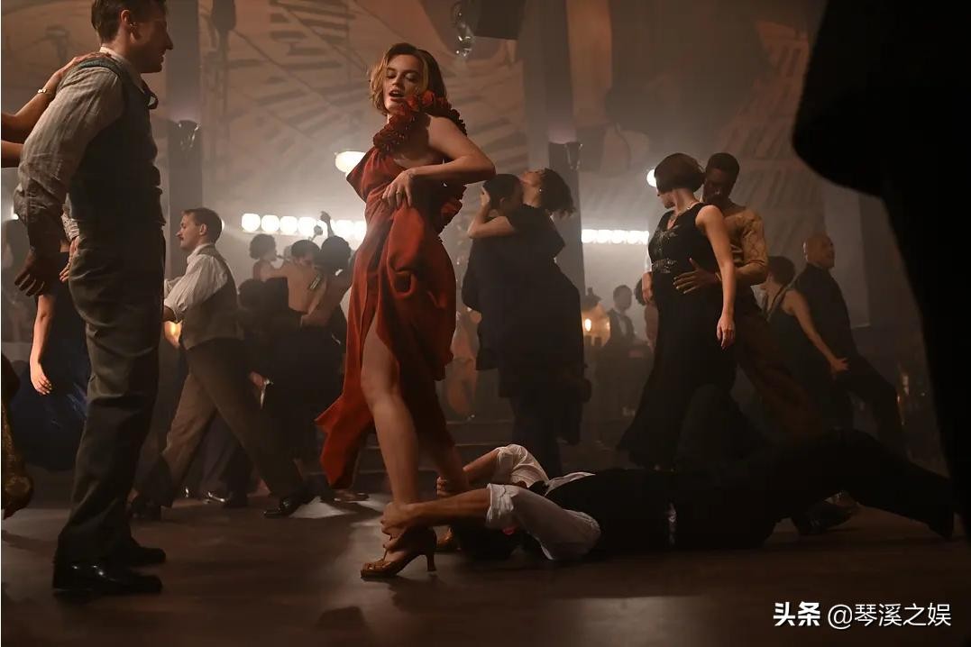至于神似女小丑玛格罗比的艾玛麦姬,饰演Jacqueline则中规中矩,在爵士舞厅与男友Simon的那高度暗示、探戈式贴身热舞时身着低胸膨袖艳红开高衩晚礼服,耳戴白鑽星形耳环,近似小麦色的肌肤与烫卷棕发,神似西班牙南部安达鲁西亚自治区的舞蹈女伶。