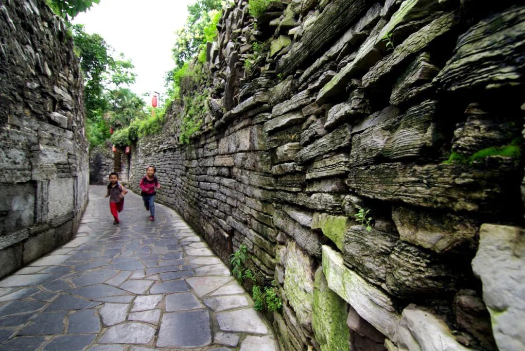 青岩古镇的背街也值得打卡,铺地的青石板已被游人磨得光亮,墙后还不时冒出高大的树木,处处透露着岁月的痕迹。