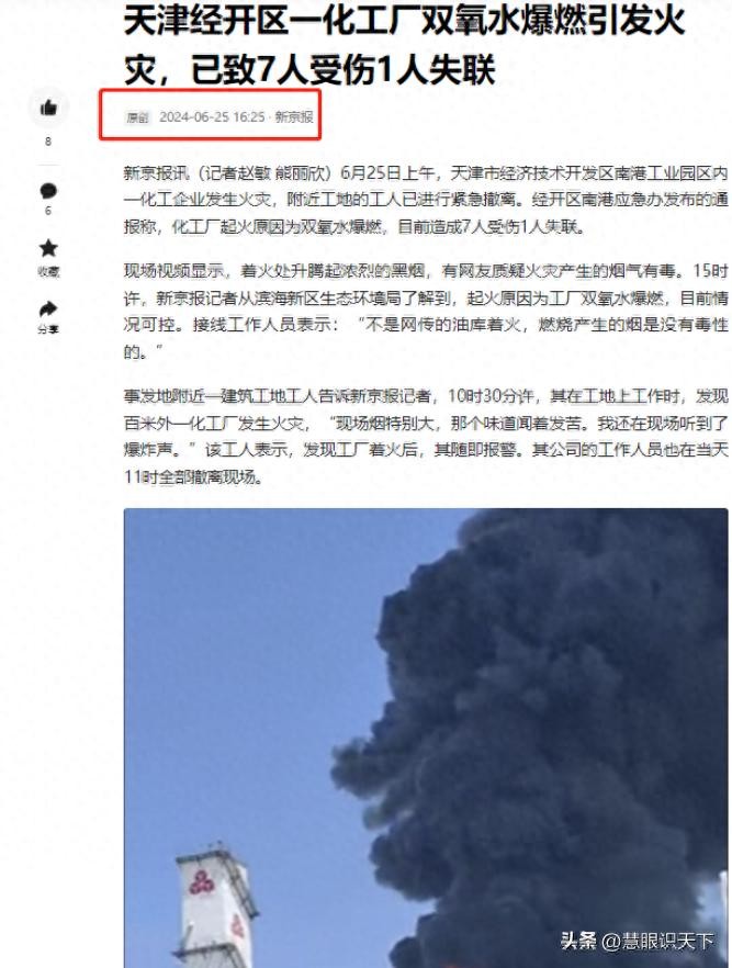 突发!天津化工厂双氧水爆燃惊魂,浓烟滚滚,工人急撤,7伤1失联