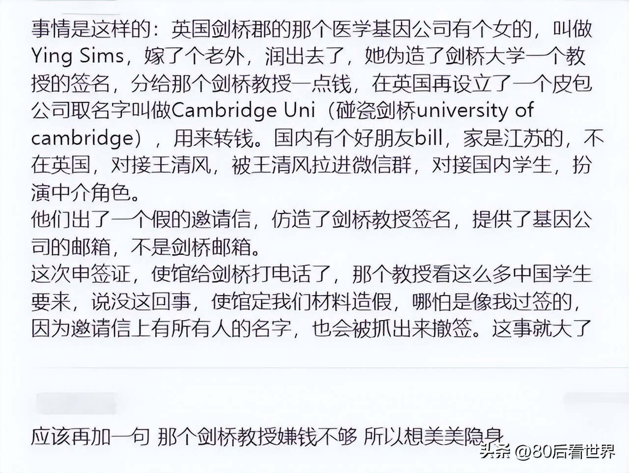 据了解啊,造成这事儿的原因呢,是有个教授伪造了剑桥大学教授的签名,还弄了份虚假的邀请函。这教授可能是想给学生多创造点机会,可谁能想到,他这一弄,后果可严重了。英国大使馆发现这份邀请函有伪造的迹象后,那是毫不手软,立马采取了严厉的措施,把所有涉及的学生都给长期拒签了。
