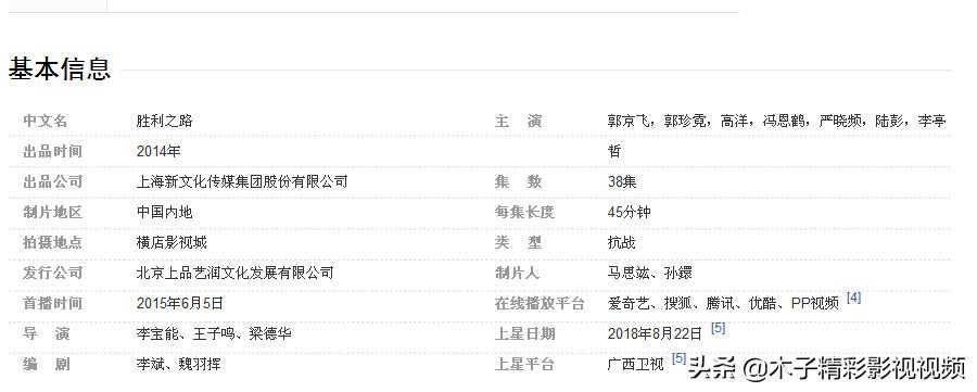 《胜利之路》是由上海新文化传媒集团股份有限公司、思宏工作室、上海欢天喜地影视传播有限公司联合出品的抗战剧,由李宝能、王子鸣、梁德华执导,郭京飞、郭珍霓领衔主演 。