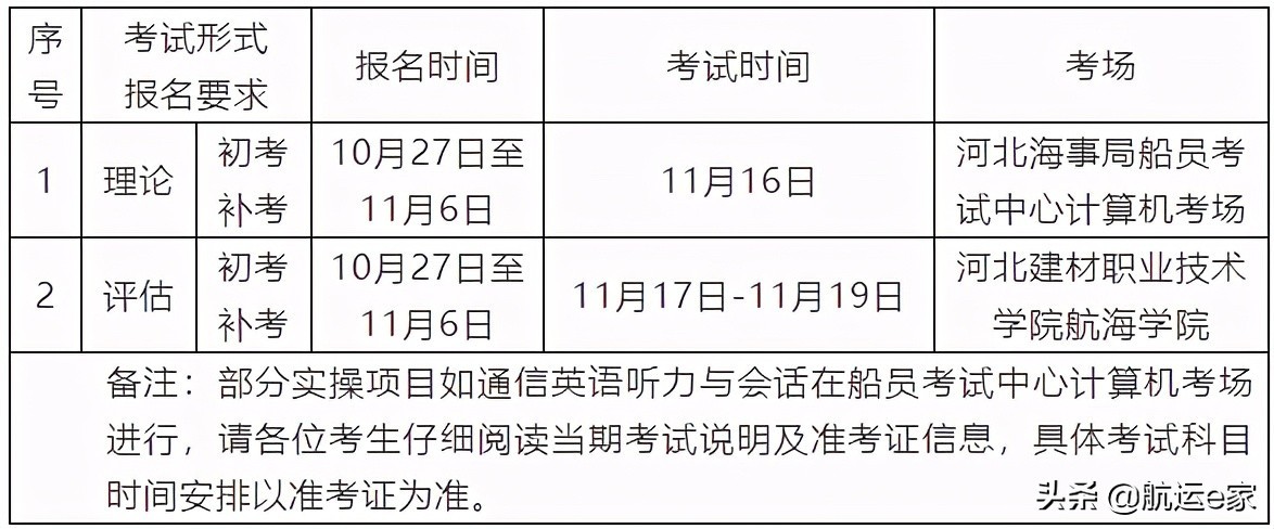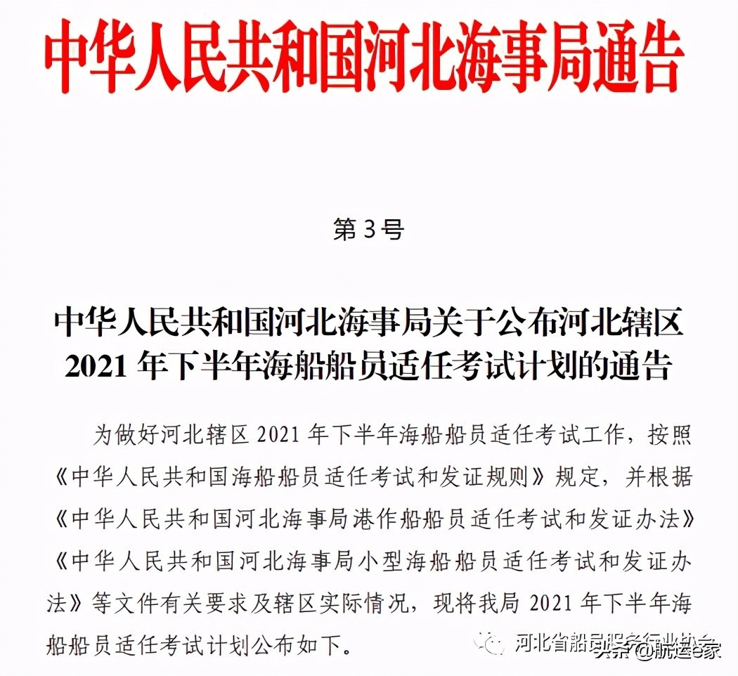 河北海事局关于公布2021年下半年海船船员适任考试计划的通知
