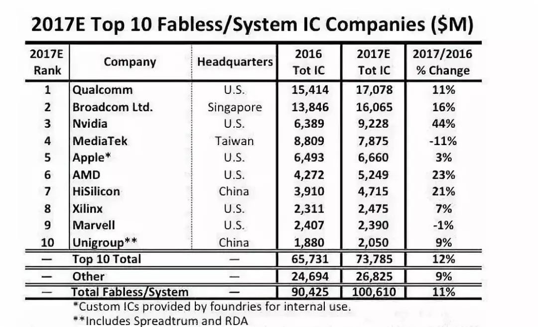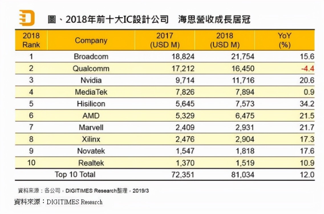 海思成为全球第五大芯片公司