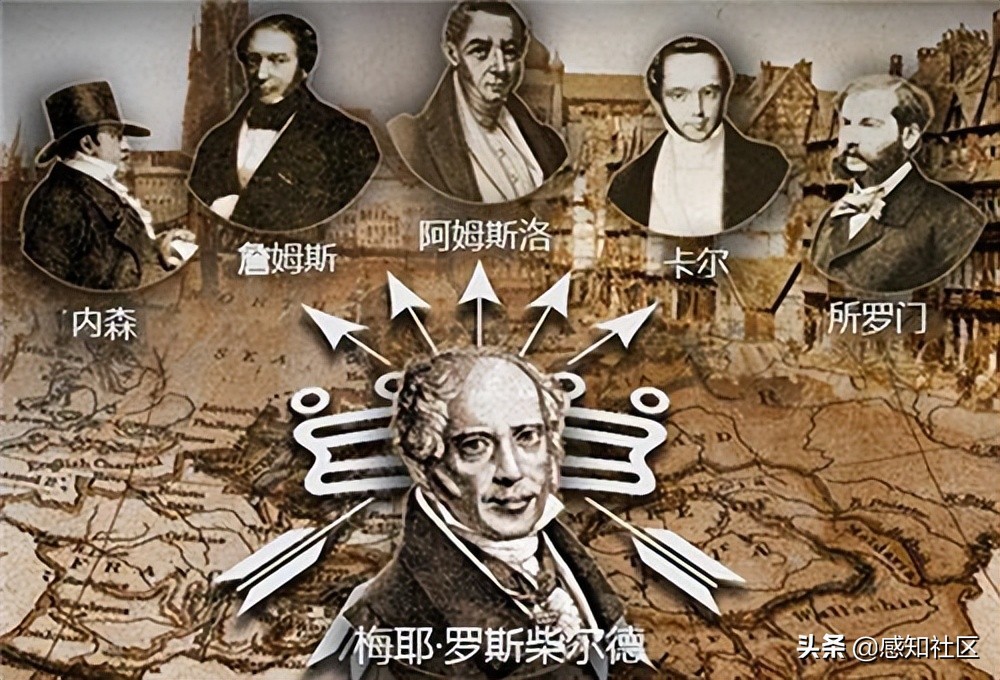 梅耶在学成之后,在法兰克福开启了自己的事业,不单单是外币兑换,还增加了真金白银与纸币的兑换这项业务,逐渐的成为一名企业家。等到财富积累到了一定程度,梅耶将五个儿子分别派往英国、法国、德国、意大利和奥地利。