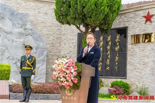 洛阳凤凰山集团公司副总经理--姚远,讲述郭兴司令员生平和凤凰山生态纪念园爱国主义教育广场的定位,她表示,革命先烈的精神值得传颂,每一位为国家利益无私奉献的英雄,都值得后人敬仰,以郭兴司令员为代表的革命精神将在凤凰山发扬光大。(文/曹小伟)