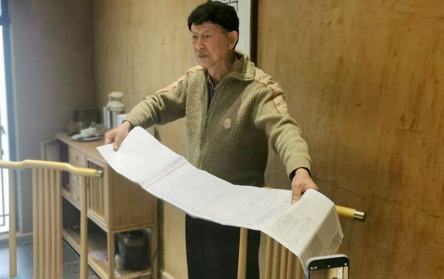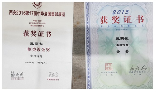 王荫长教授(左)与他的邮票藏品