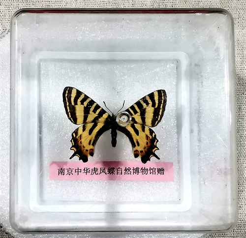 早在去年4月开馆仪式上,中华虎凤蝶博物馆就向世界昆虫邮票博物馆赠送了珍贵的蝴蝶标本,丰富了博物馆馆藏。在博物馆的墙壁上,参观者还可以欣赏到蝴蝶贴画。自然生物的色彩无可复制,再高明的画家也无法用画笔描绘,因此,这些蝴蝶画也成为镇馆之宝。