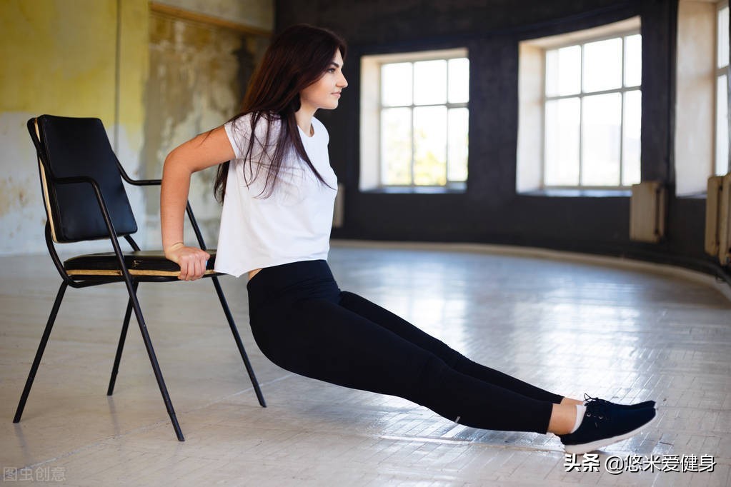 屈肘下压的幅度不要过低,尽量做到肩部和肘部平齐,身体不要离凳子太远,还可以采用屈腿的方法操作。