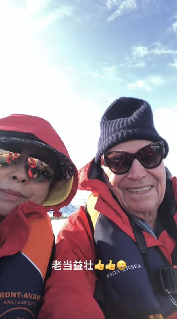 60岁梁雁翎罕见露脸,满头白发身材发福仍优雅自信,常年四处旅游