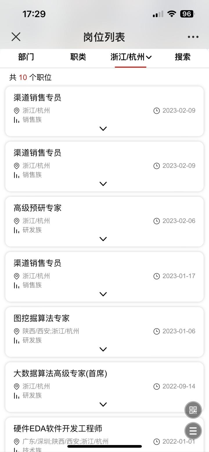 入职华为一直是职场人的梦想,华为的门槛高不高?钱报记者打开华为的社会招聘一览,在岗位列表中,浙江杭州、宁波、温州三城市有岗位空缺,涉及到渠道销售专员、高级预研专家、图挖掘算法专家、大数据算法高级专家(首席)、硬件EDA开发工程师、业务发展经理、高级业务发展经理、高级解决方案架构师等职位。不过,宁波和温州两地只有渠道销售专员职位。