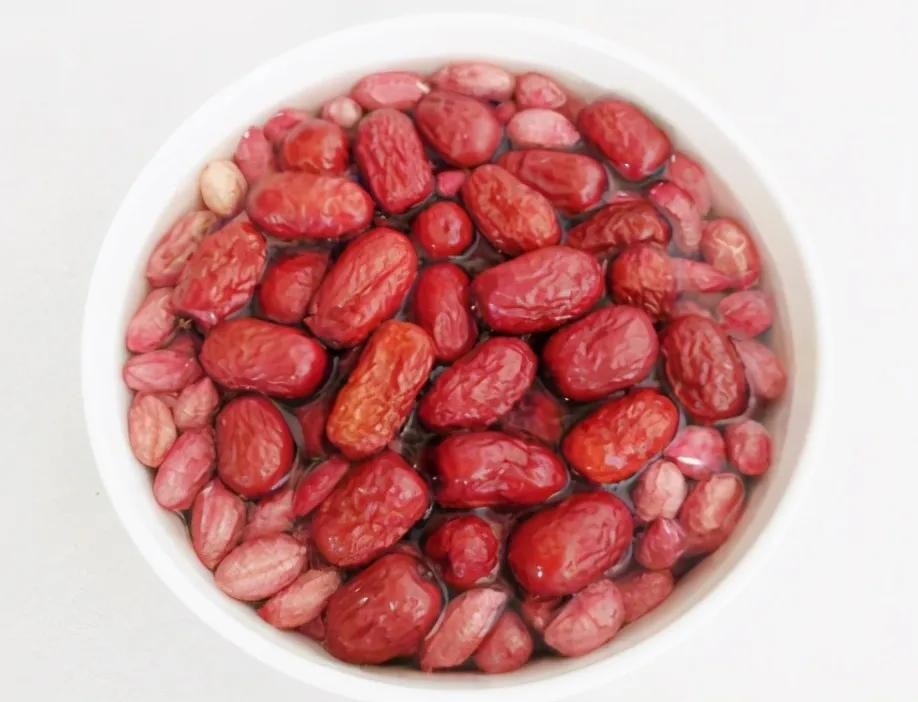 制作过程:第一步,红小豆、莲子等不易煮,需要事先泡水一个晚上,将食材都泡发,大米、糯米淘洗干净,捡出杂质,桂圆干和红枣放入水中简单泡几分钟便可;