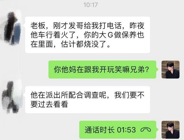 11月25日,白冰在社交平台发文,表示自己豪车被烧,消息一出瞬间引起了网友的热议。他被烧的车是一辆红色大G,价值在几百万不等,他对这辆车投入了不小的心血,从头到脚一共花了2个多月的时间。