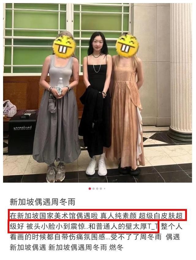 一位在新加坡的网友在社交媒体上分享了这次邂逅,她惊叹于周冬雨的自然素颜。她形容,周冬雨的皮肤雪白如雪,看起来宛如人间仙子。网友还被周冬雨头颅的纤巧和小巧感所折服,她直言周冬雨仿佛与普通人之间隔着一道坚实的壁垒。