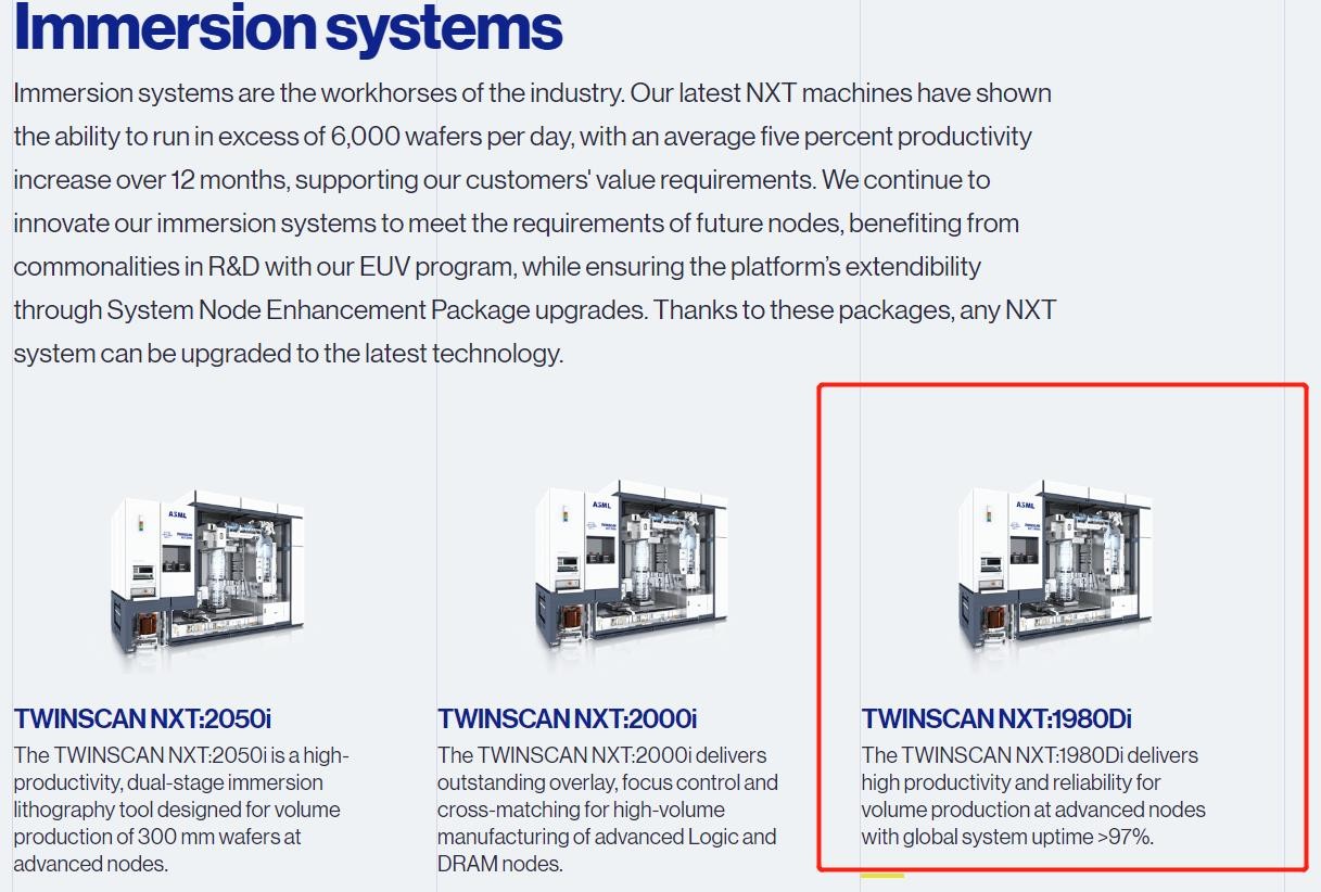 ASML表示,出口管制并不涉及所有浸润式光刻机,只涉及到“最先进”的光刻机。什么是最先进的浸润式光刻机?ASML认为是TWINSCAN NXT:2000i及之后的浸没式光刻系统。