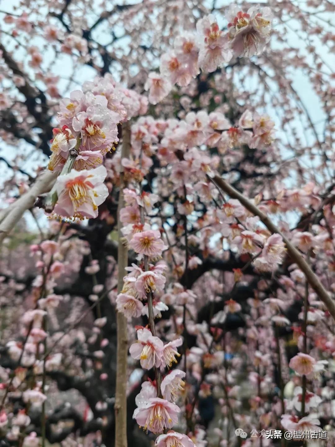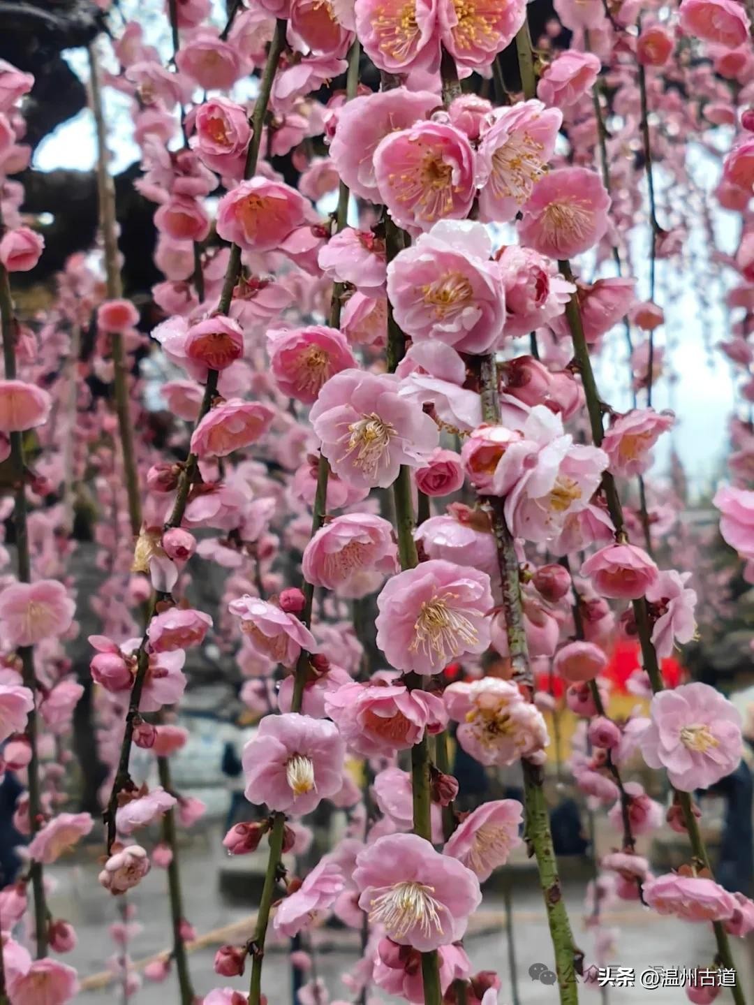 每年春节过后至3月,是龙梅的盛开之期,此时的普安禅寺,仿佛被粉色的云霞所笼罩,美轮美奂。“江南无所有,聊赠一枝春。”在江南的春日里,充满禅意的普安禅寺宛如一幅古韵悠然的画卷,而寺前的龙梅,便是这画卷中最为灵动的一笔。站在这千年古刹之前,我们为那一树树如垂柳般柔美的龙梅所惊叹。