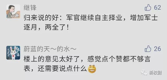 俗话说得好,好饭不怕晚,如果真的能够从广大军人的切身利益出发,能够为大家的后路提供更多保障,等等也无妨。