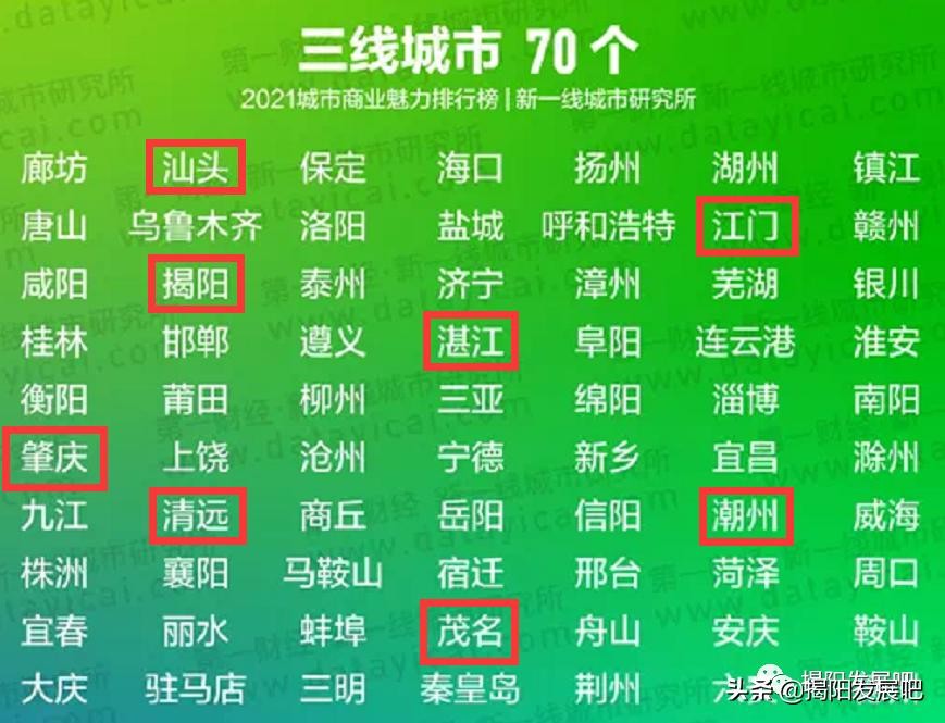 此外,我省江门、湛江、肇庆、清远、茂名五个城市,也位居本次三线城市榜单之中