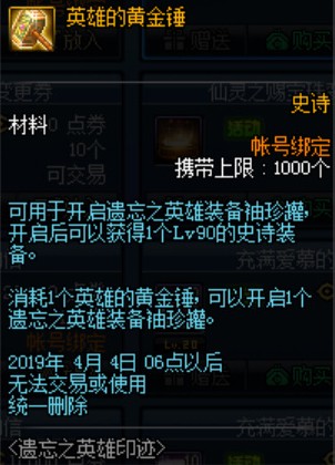 DNF英雄的黄金锤怎么获取攻略 将2019年4月4日6点删除