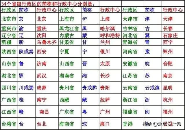 中国各省级行政区的简称