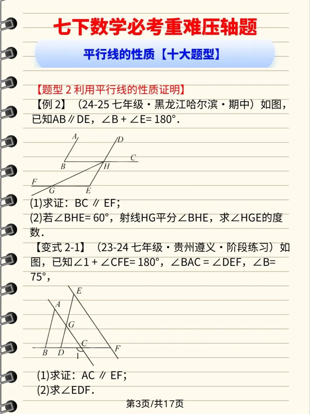 七年级下册数学,重难点压轴题无非就是这30题