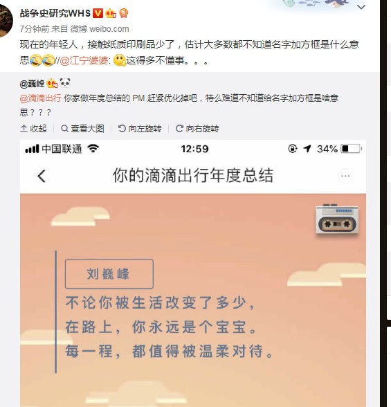 滴滴年底出行总结报告引网友争议:用户名字加方框代表已去世?