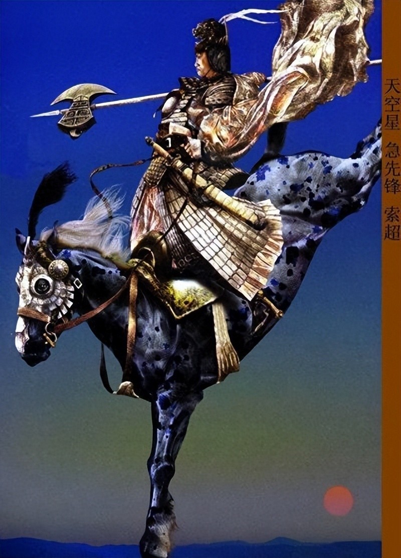 他是河北大名府留守司正牌军,北京大名府上将,善使金蘸斧,坐骑为雪豹马 。索超武艺高强,性格刚猛急躁,上阵时总是一马当先,由此得名“急先锋” 。
