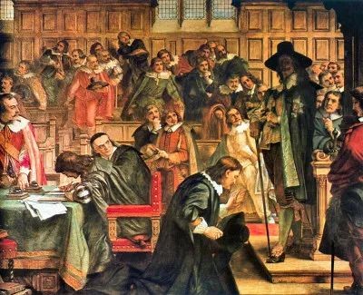 17 世纪,英国议会经历了一段动荡的时期。国王查理一世(Charles I)试图在没有议会的情况下进行统治,并在1642年试图逮捕五名议员,这些议员都是他的政敌。这直接导致了内战爆发、国王被处决、以及君主制和上议院被废除。