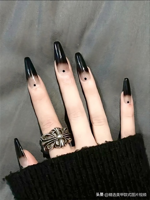 最后,黑色渐变美甲同样是热门之选。由深黑色至浅黑色的渐变成效,为指甲赋予了丰富的层次感,仿佛是夜幕降临之时的色彩变幻。这种渐变设计让黑色不再单调,反倒更具立体感与时尚感。“黑色渐变美甲”“层次感美甲” 受到众多时尚博主的力荐,不管是日常出行逛街还是参与时尚活动,皆能展现出与众不同的品味。