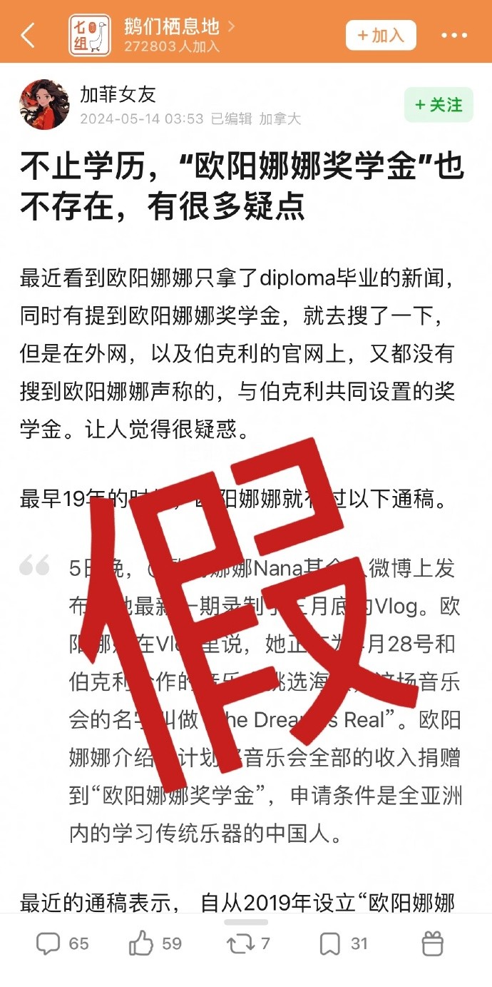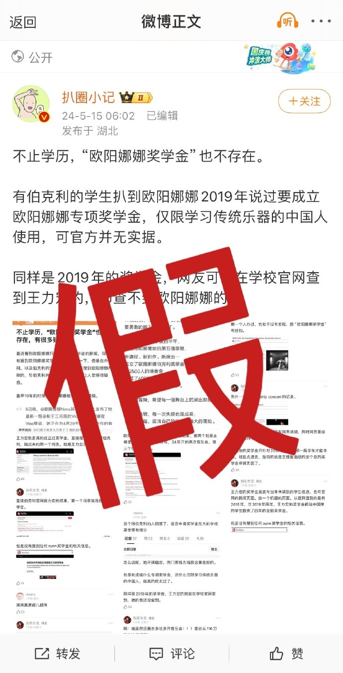 学历、奖学金引发质疑,欧阳娜娜工作室回应:对于发布及传播不实言论的网络用