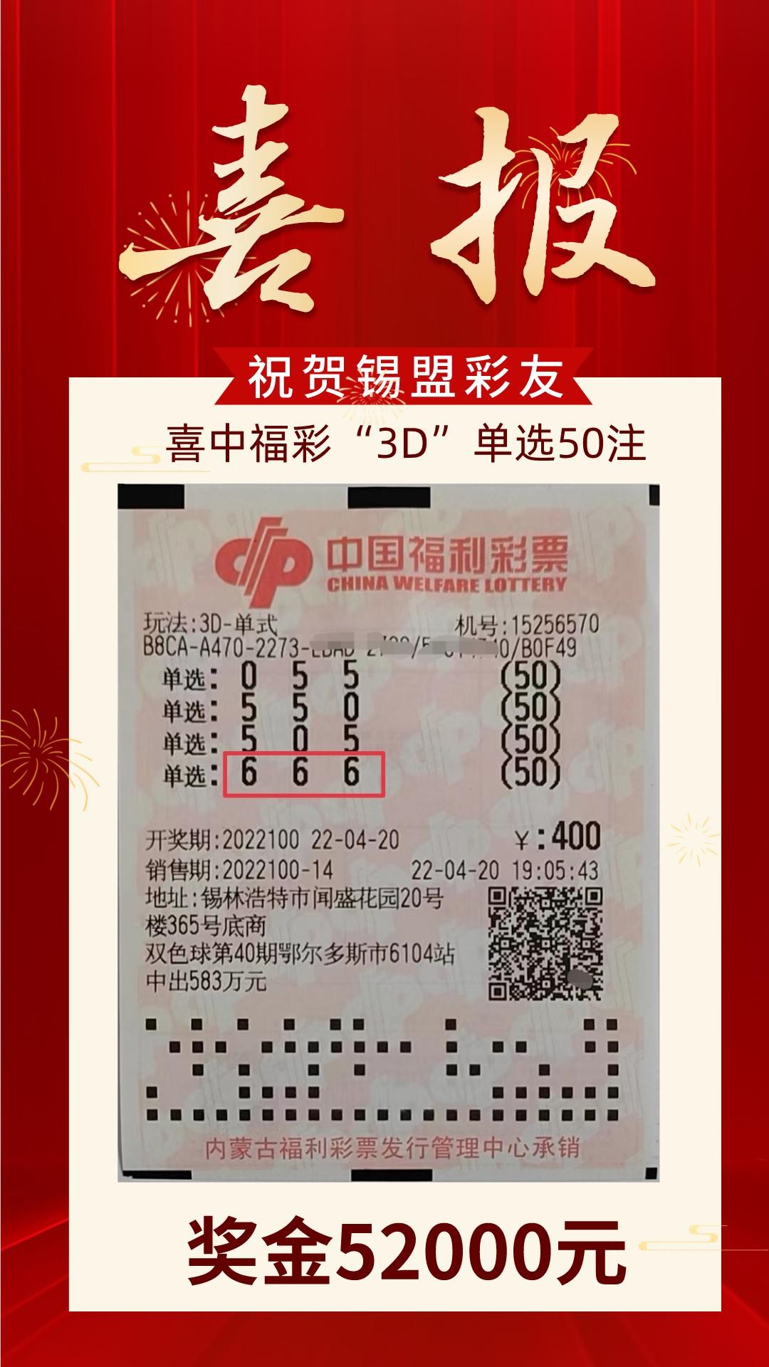 【3D】重磅!3D“豹子号”666,锡盟彩友收获万元奖金