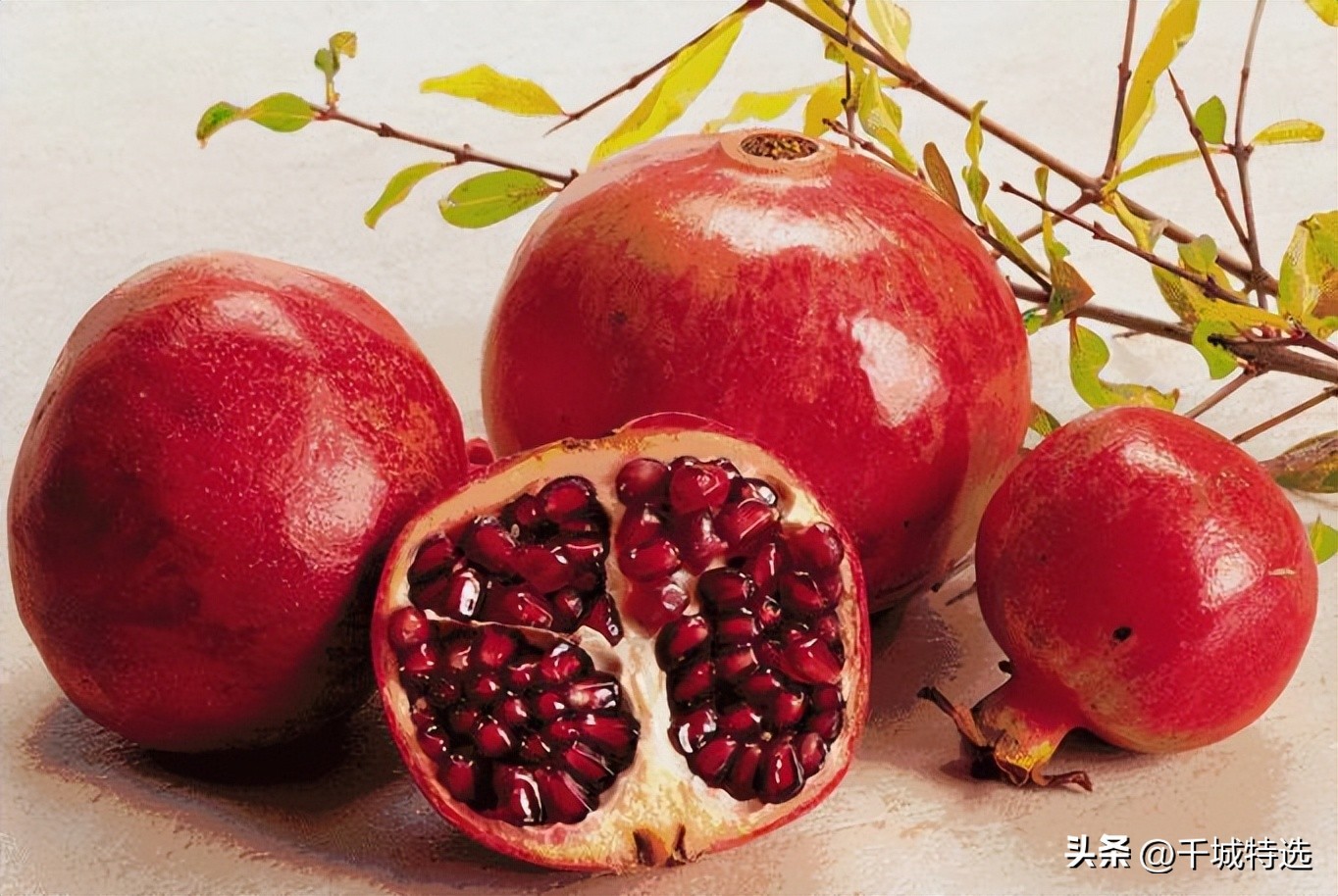 塔山石榴特点鲜明,主要是青皮软籽,果皮青黄色,阳面红色或淡红色,皮薄。籽粒马齿状,籽粒大,红白色,核小而软;果汁多,甜味浓,品质上等。