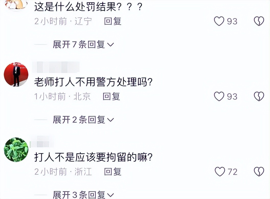 北京网友质问:老师打人不用警方处理吗?这反映了网友对法治公平的期待。还有网友道:打人不是应该要拘留的吗?
