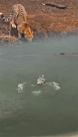 豹女在河道被鳄鱼卡视野单杀,这件事告诉我们,没事不要去看热闹,不然你就是别人看的热闹了。