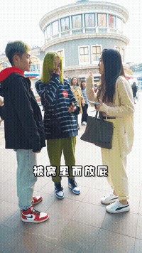 边上假装自拍的妹子,快绷不住了。