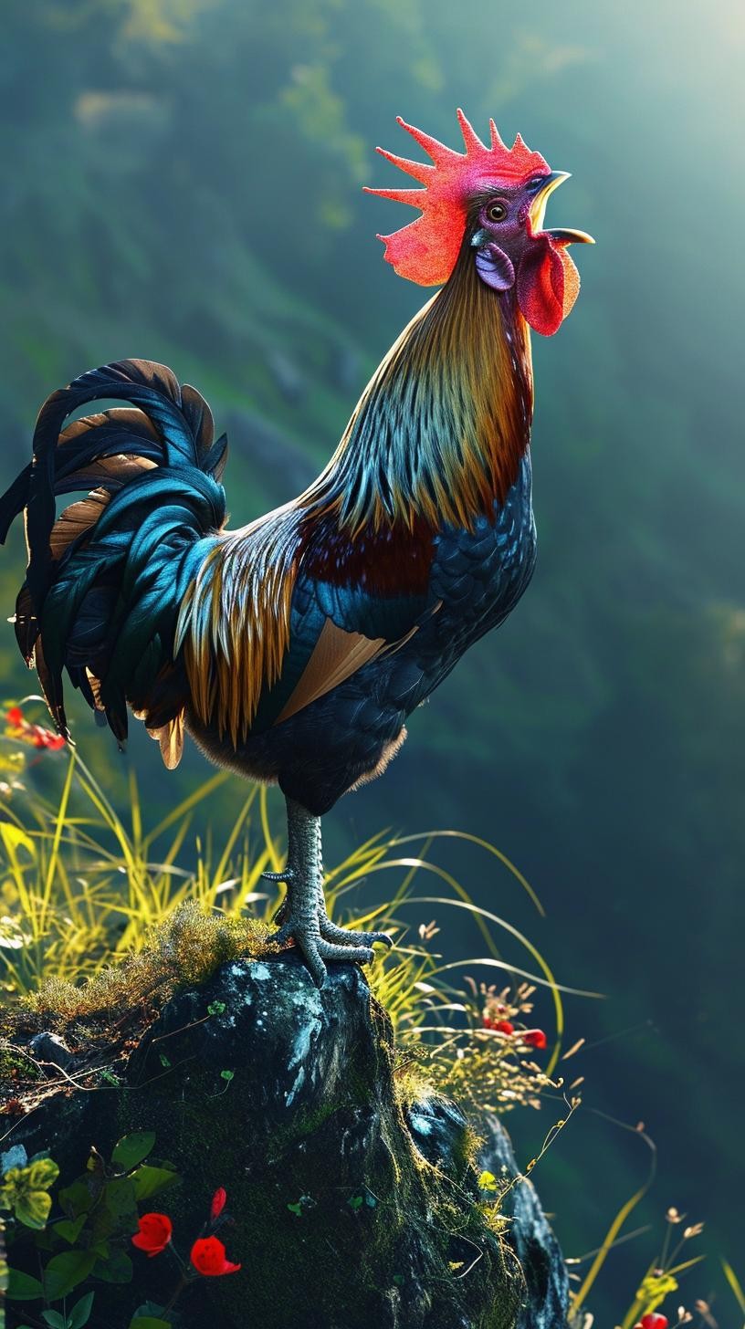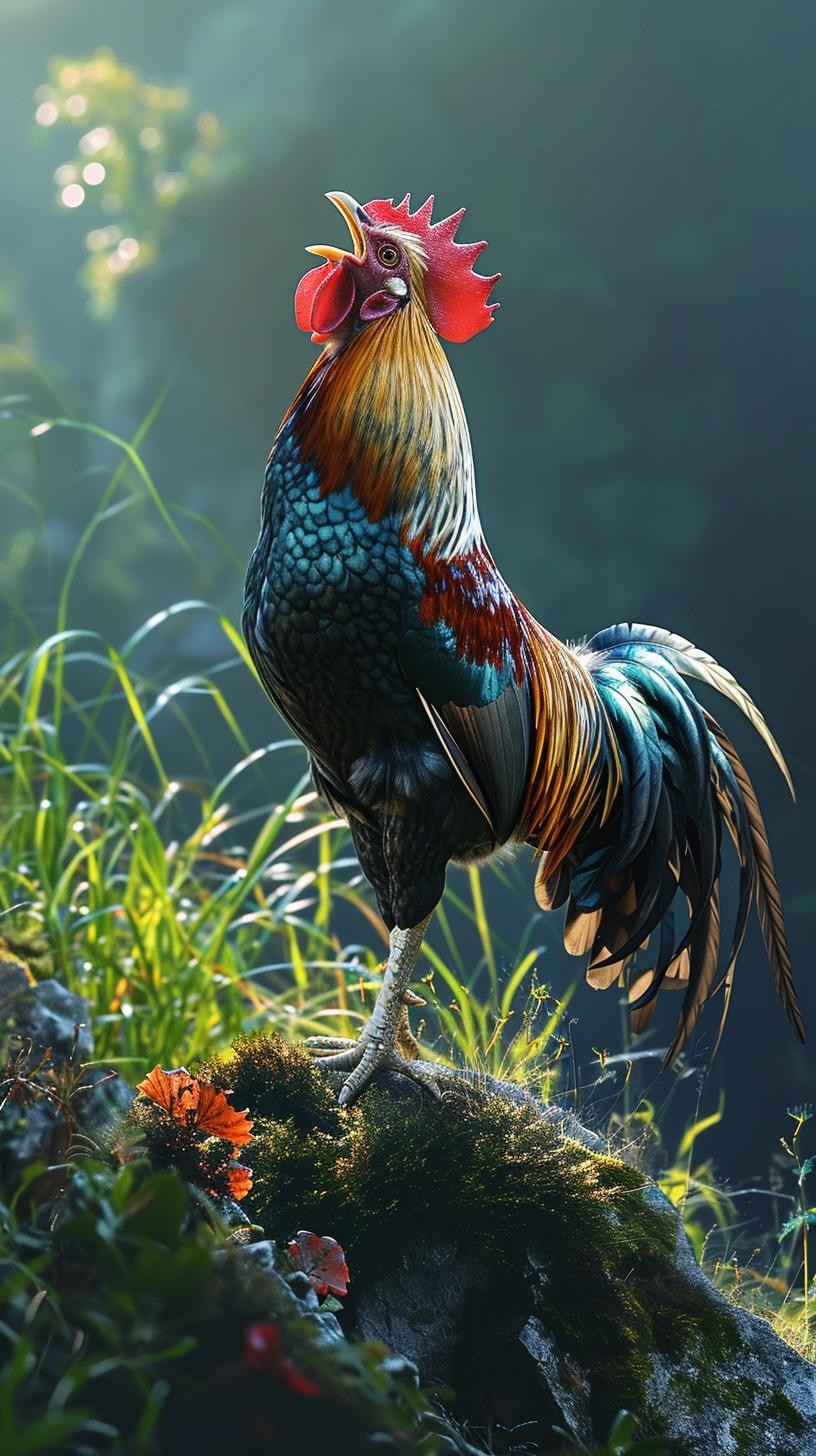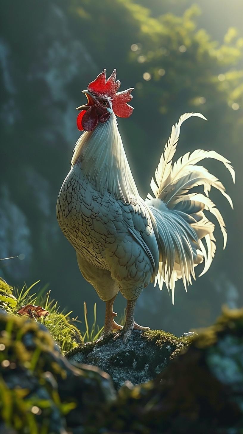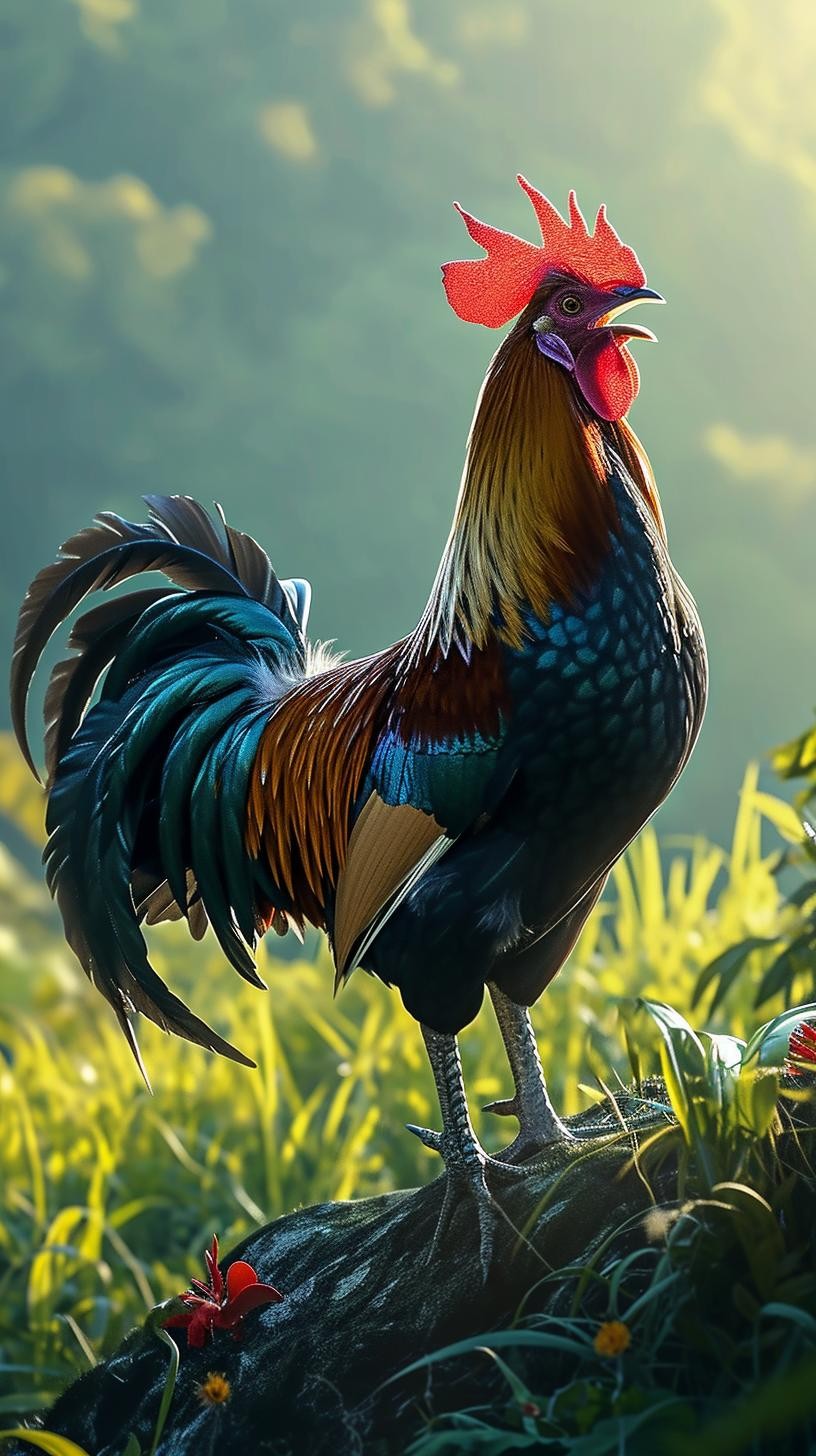 在过去的雄鸡壁纸图里,很难通过AI将雄鸡啼鸣的姿态完美的展现,这次我将雄鸡张嘴啼鸣的姿态也创作了出来,让大公鸡的壁纸更加生动,有了动态的感觉。