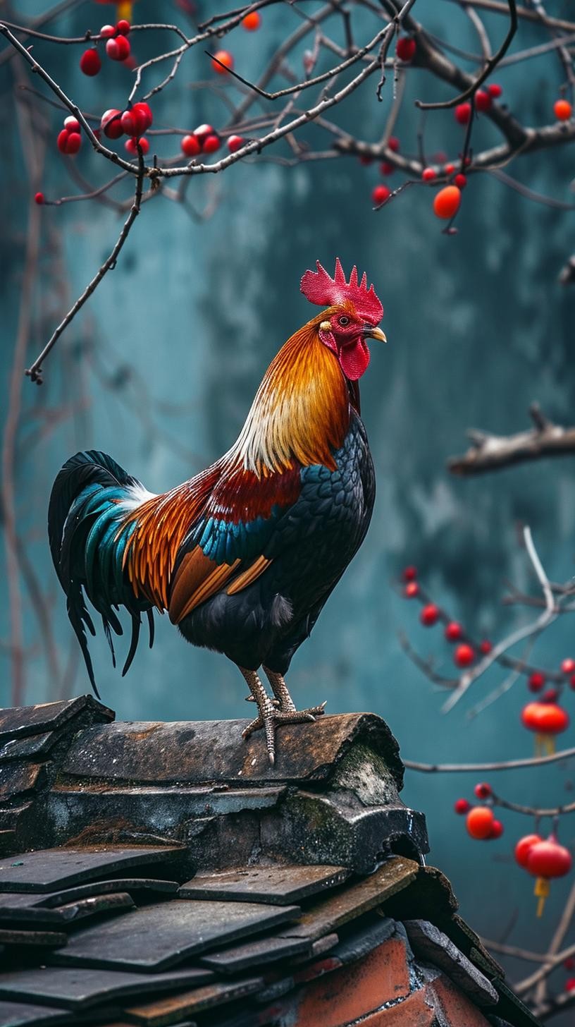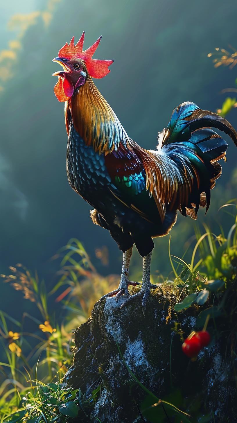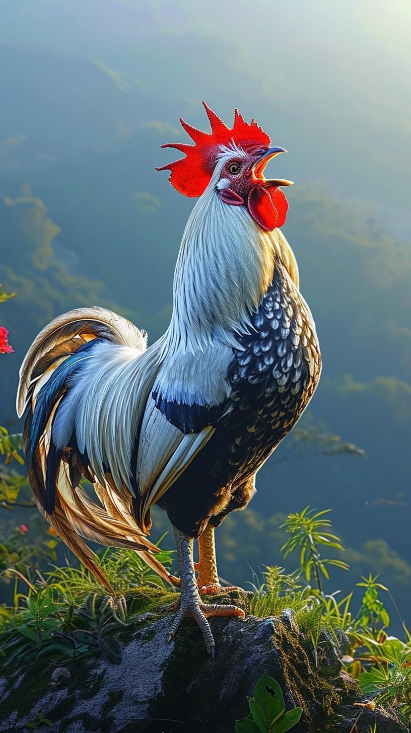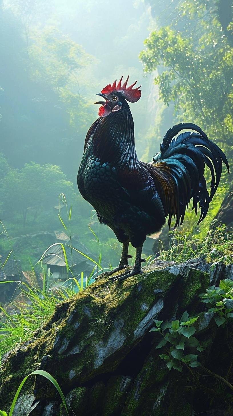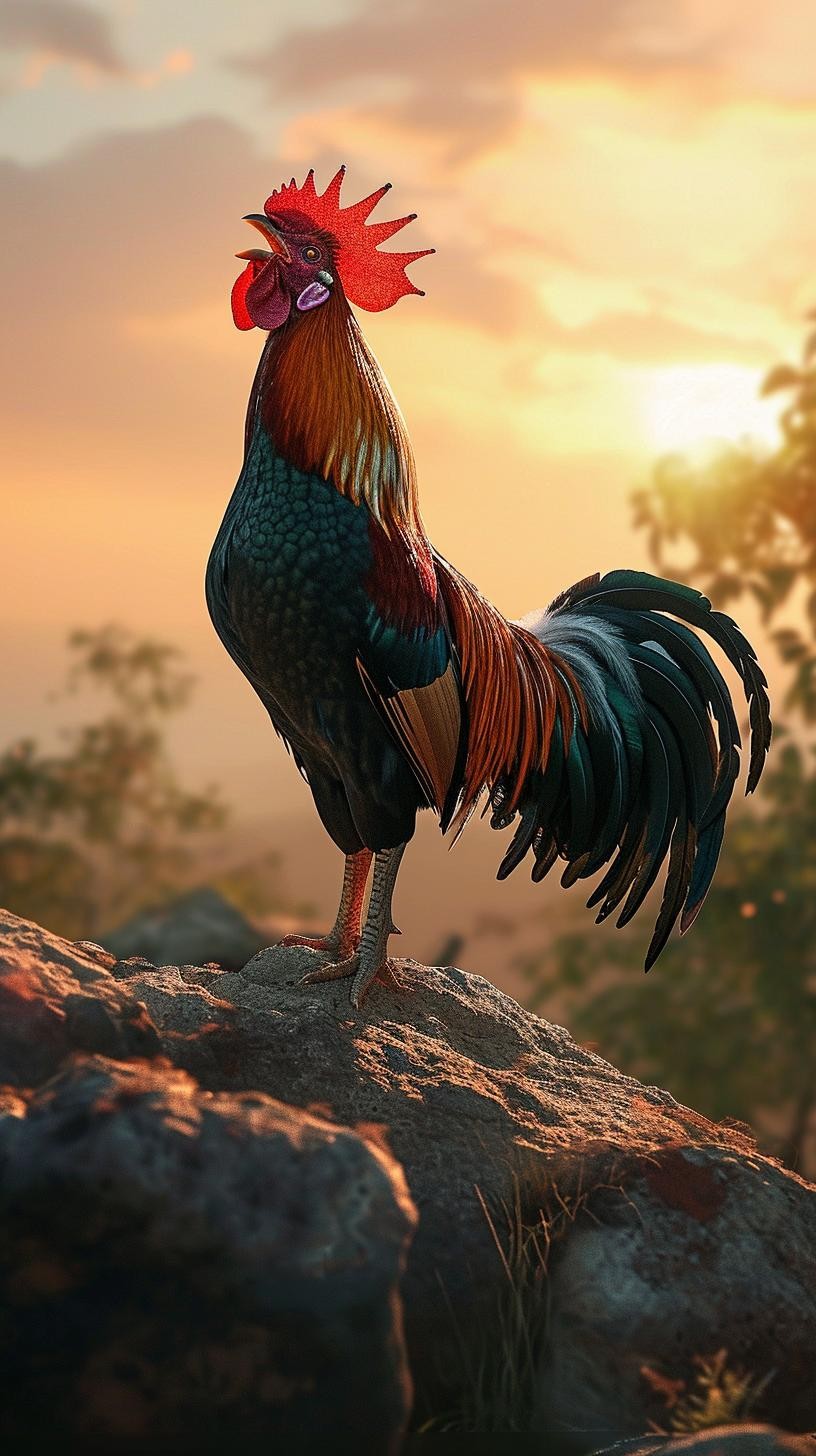 在过去的雄鸡壁纸图里,很难通过AI将雄鸡啼鸣的姿态完美的展现,这次我将雄鸡张嘴啼鸣的姿态也创作了出来,让大公鸡的壁纸更加生动,有了动态的感觉。