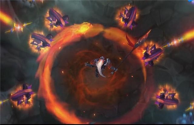 要说最帅的就是E和R了,两个AOE技能带来的效果都是震撼级别的,E技能是一个快速突进技能而且可以削甲(15%),对于adc来说最怕的就是这种突进还能把你给减速的技能了。再来看R,赵信的R——新月横扫,一条火龙横空出世环绕在赵信周围,就像张辽 文远的E一般,但是霸气外露明显是赵信更胜一筹!