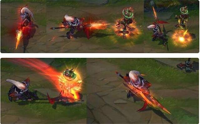 QW其特效主要是体现在其三枪戟上,可以看出开W时戟上会显露橙色的炫光,W第三下暴击也是将戟从天上挥下,光这个姿势相比就能迷倒一群大兄弟吧。而且挥戟留下的一抹橙色弧光更是霸气。QW一起开的额时候Q特效可能会被W所覆盖,但Q特效本身就不明显,就像耀光的被动一样(手泛金光)。