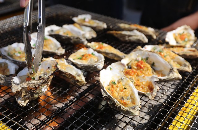 烤生蚝是男人们的最爱。那白花花的生蚝肉,烤的鲜嫩多汁。吃烤生蚝的最佳体验效果是,要连汤带肉一口下去,在嘴里慢慢的品。然后,轻轻咬一口,让肥嘟嘟的生蚝肉在你嘴里爆浆。那种感觉,就是人间美味,瞬间幸福指数爆满。