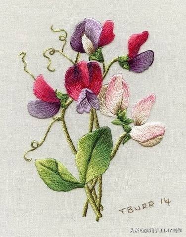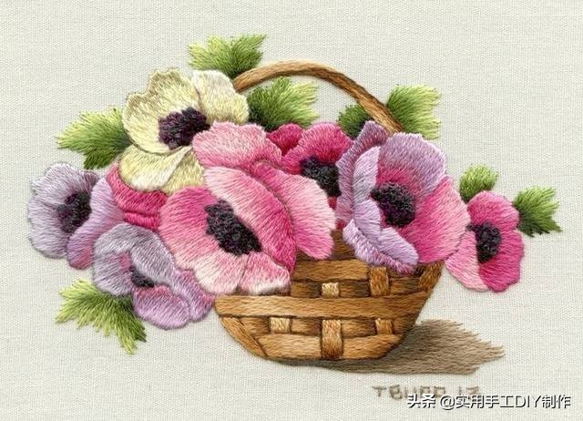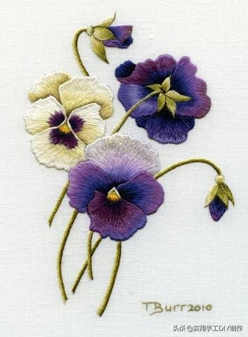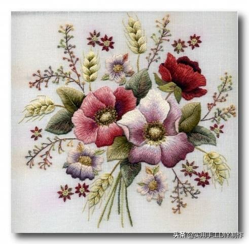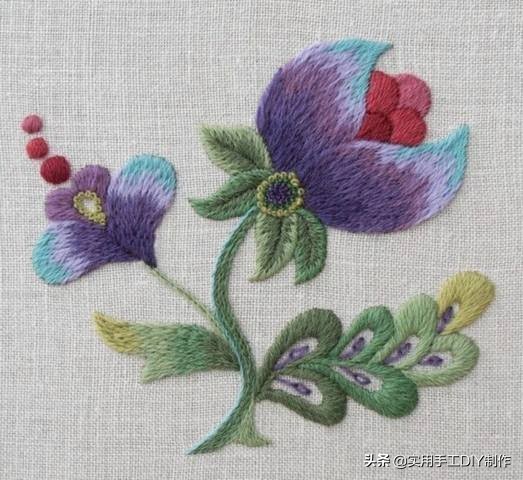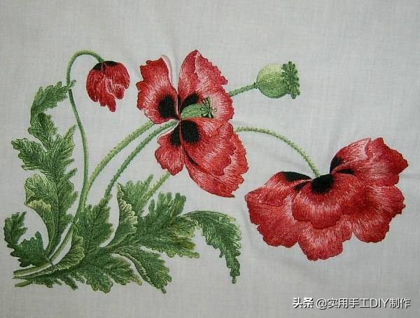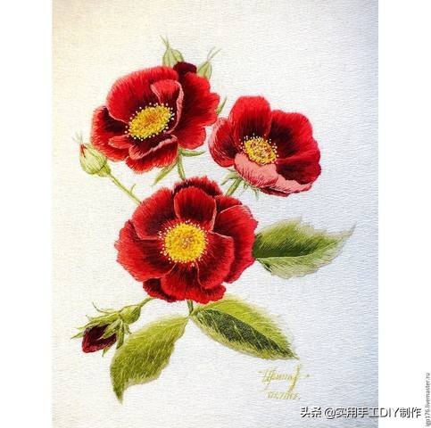 下面这些作品用到最多的就是缎面绣和长短针法,简单针法却能绣出这么美丽的花朵,你也可以做到的