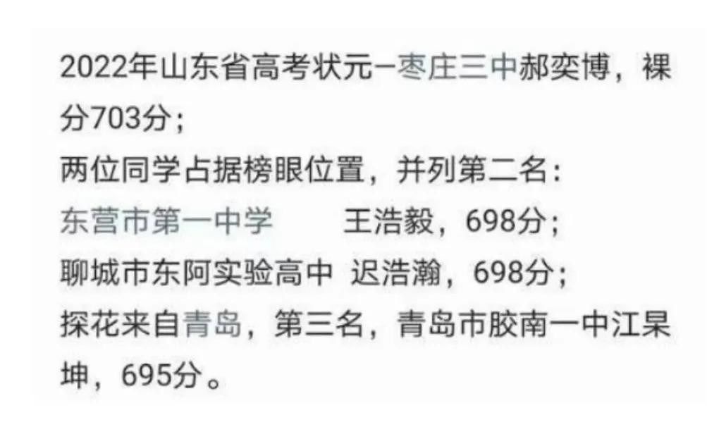 2022山东省高考状元公布,裸分成绩高达703分,来自这所重点中学