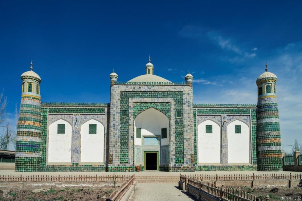 也不能错过香妃墓,院内修建了门楼、小礼拜寺、大礼拜寺、教经堂和主墓室等建筑,建筑都恢宏漂亮,又带有非常浓厚的伊斯兰教风格,这种绿色瓷砖、圆拱门窗的房屋非常特别。