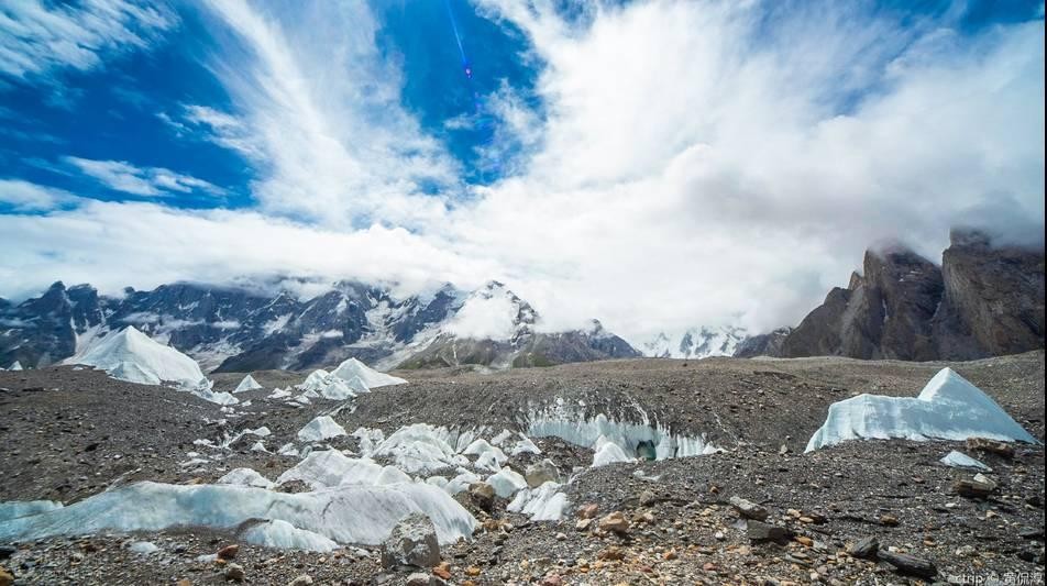 从北侧大本营到顶峰,垂直高差竞达4700米,是世界上8000米以上高峰垂直高差最大的山峰。北侧的冰川叫乔戈里冰川,地形复杂多变。冰川表面破碎,明暗冰裂缝纵横交错。