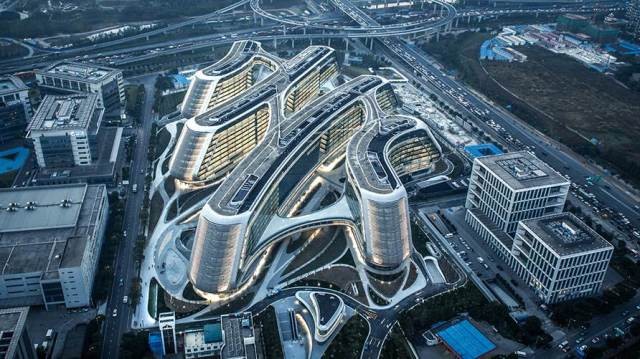 凌空SOHO位于虹桥临空经济园区,占地8.6万平方米,总建筑面积约35万平方米,是SOHO中国与著名建筑设计师扎哈·哈迪德(Zaha Hadid)联手打造的第三个建筑精品。