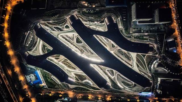凌空SOHO的12栋建筑被16条空中连桥连接成一个空间网络,叠放在下沉式广场上空,最高处落差约40米,俯仰之际,如置身峡谷,震撼非凡。
