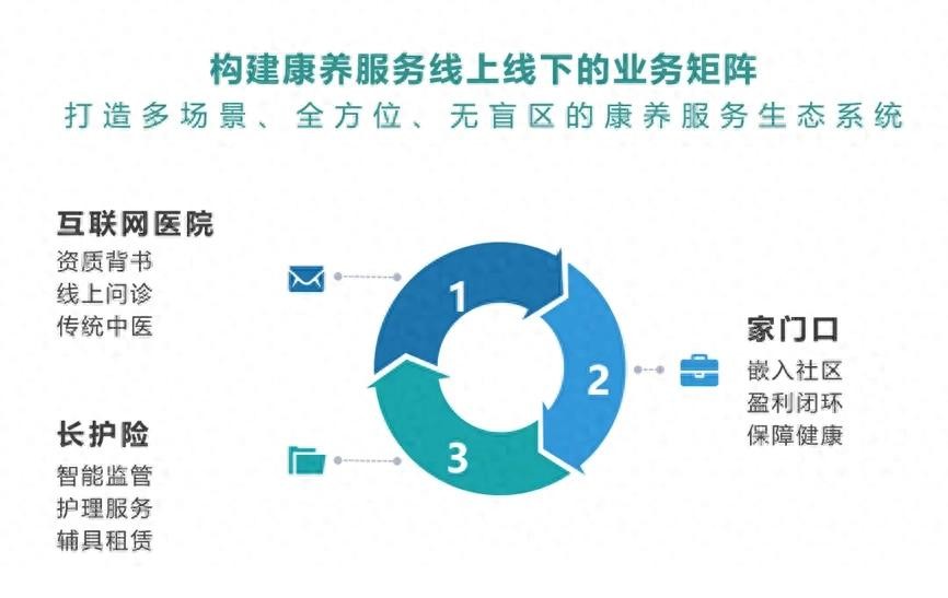 目前公司旗下拥有三大业务板块,一是长护险智慧服务,二是“家门口”数字康养,三是快诊互联网医院,三大业务构成了康养服务线上线下的业务矩阵。