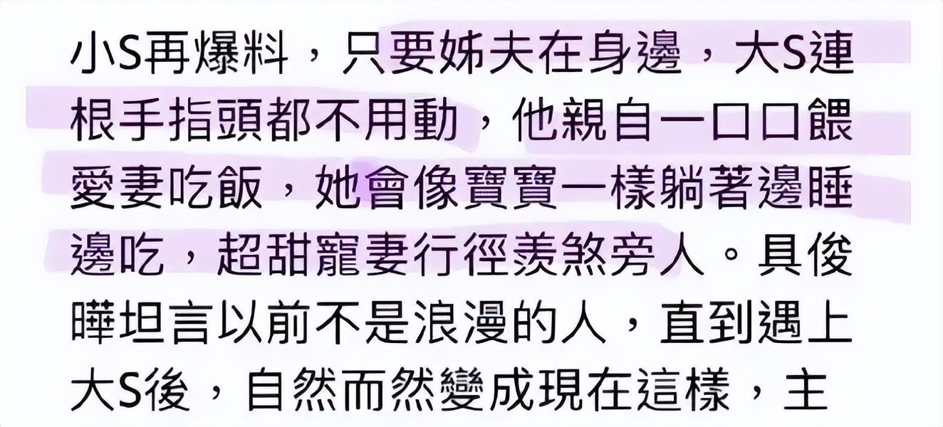 不仅仅是前夫汪小菲公开吐槽过大S,不出去工作不营业。连具俊晔也曾说过,要给她喂饭。